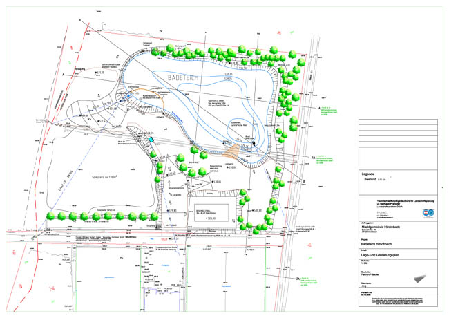 Seitens der Marktgemeinde Hirschbach/Bezirk Gmünd war ein Badeteich mit Beachvolleyballplatz und Spielplatz gewünscht, der zur Ergänzung und Attraktivierung des bestehenden Freizeitzentrums beitragen sollte.