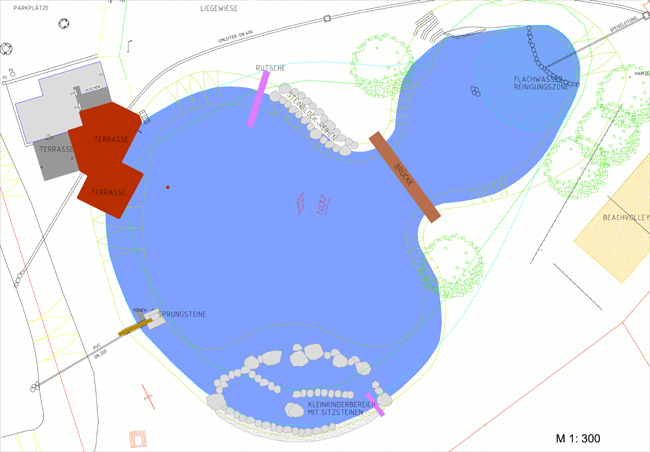 Gut zehn Jahre nach der Errichtung des Teiches sollte durch eine Umgestaltung und Adaption der Anlage an die Nutzungsbedürfnisse den strukturellen Schwächen und Alterungserscheinungen der Einrichtungen entgegengewirkt werden.